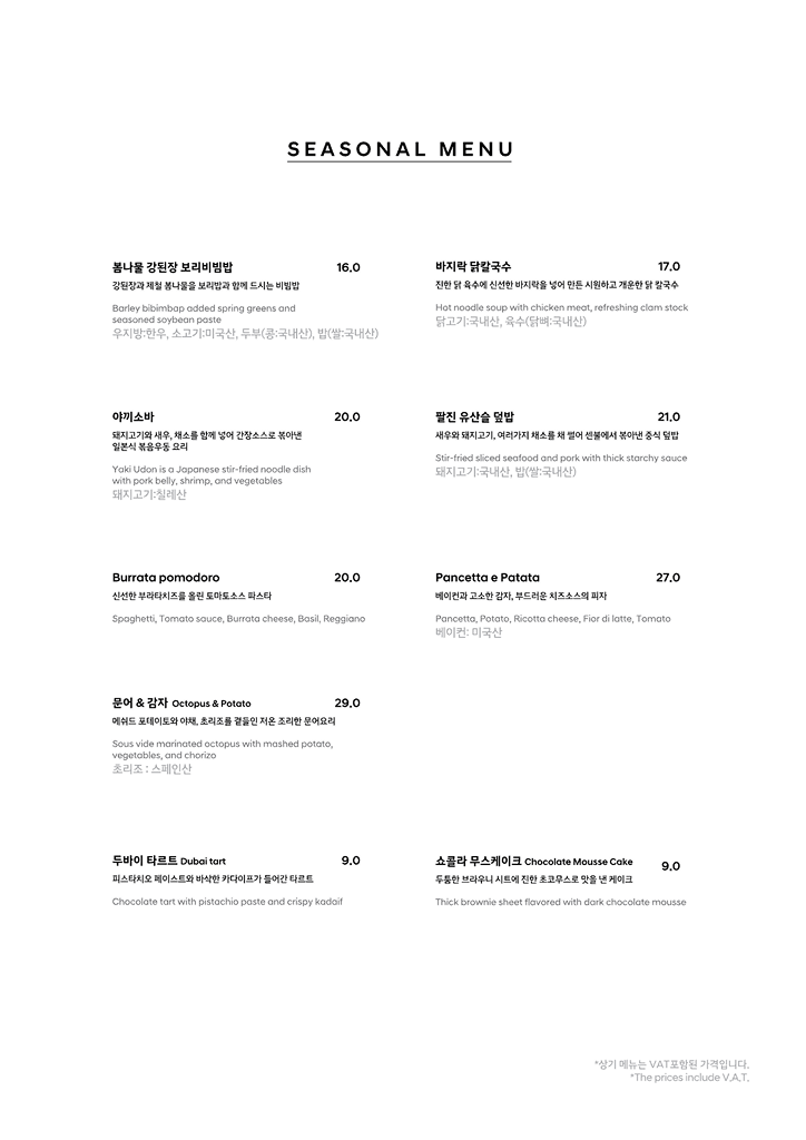 키친 바이 해비치 MENU