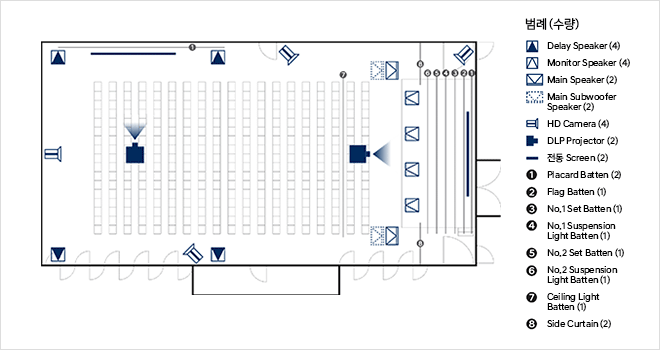 | 영상시스템 | DLP 프로젝터 20,000ANSI_A홀 / 14,000ANSI_B홀 | 2ea | 천정 내 매립 |