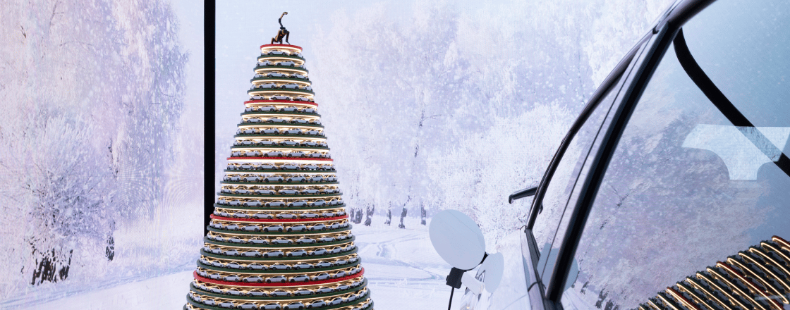 지속가능한 크리스마스를 위한 재사용 브릭 트리와 함께, 다이캐스트로 만들어진 트리 작품도 전시되어 있습니다.새하얀 눈으로 뒤덮인 겨울 숲을 배경으로 특별한 크리스마스 분위기를 느껴보세요.