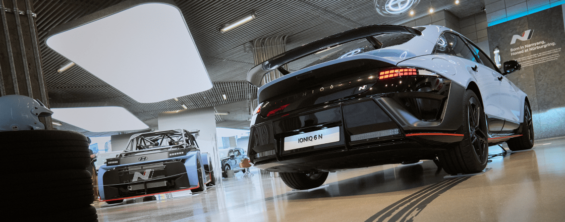 현대자동차의 대표 차량 전시와 함께 3층에는 10주년을 맞이한 현대자동차 고성능 브랜드 N 전용 전시 공간이 마련되어 있습니다. 롤링랩(Rolling Lab)에서 탄생한 RN24와 한정판 N 퍼포먼스 파츠, 게임 존 등 다이나믹한 N의 매력을 느낄 수 있습니다. 4층에서는 친환경 차량 전시와 함께 아이오닉의 다양한 컬러 조합을 실물로 확인할 수 있는 다이캐스트월을 만나보세요.
