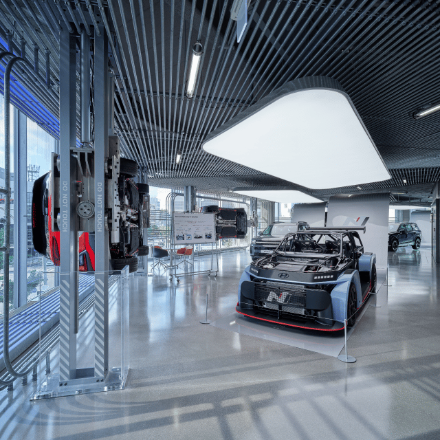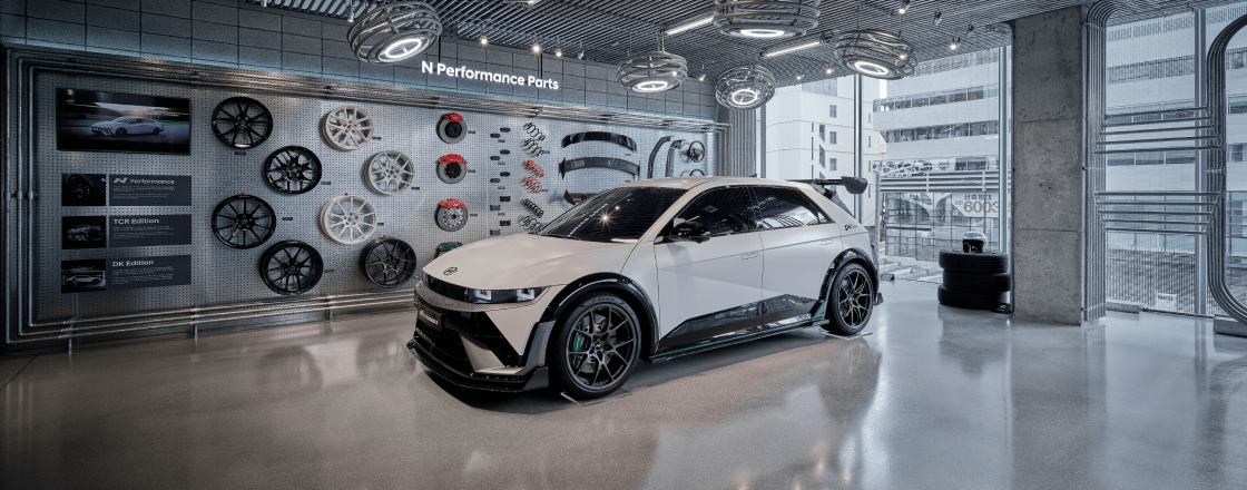 현대자동차의 대표 차량 전시와 함께 3층에는 10주년을 맞이한 현대자동차 고성능 브랜드 N 전용 전시 공간이 마련되어 있습니다. 롤링랩(Rolling Lab)에서 탄생한 RN24와 한정판 N 퍼포먼스 파츠, 게임 존 등 다이나믹한 N의 매력을 느낄 수 있습니다. 4층에서는 친환경 차량 전시와 함께 아이오닉의 다양한 컬러 조합을 실물로 확인할 수 있는 다이캐스트월을 만나보세요.